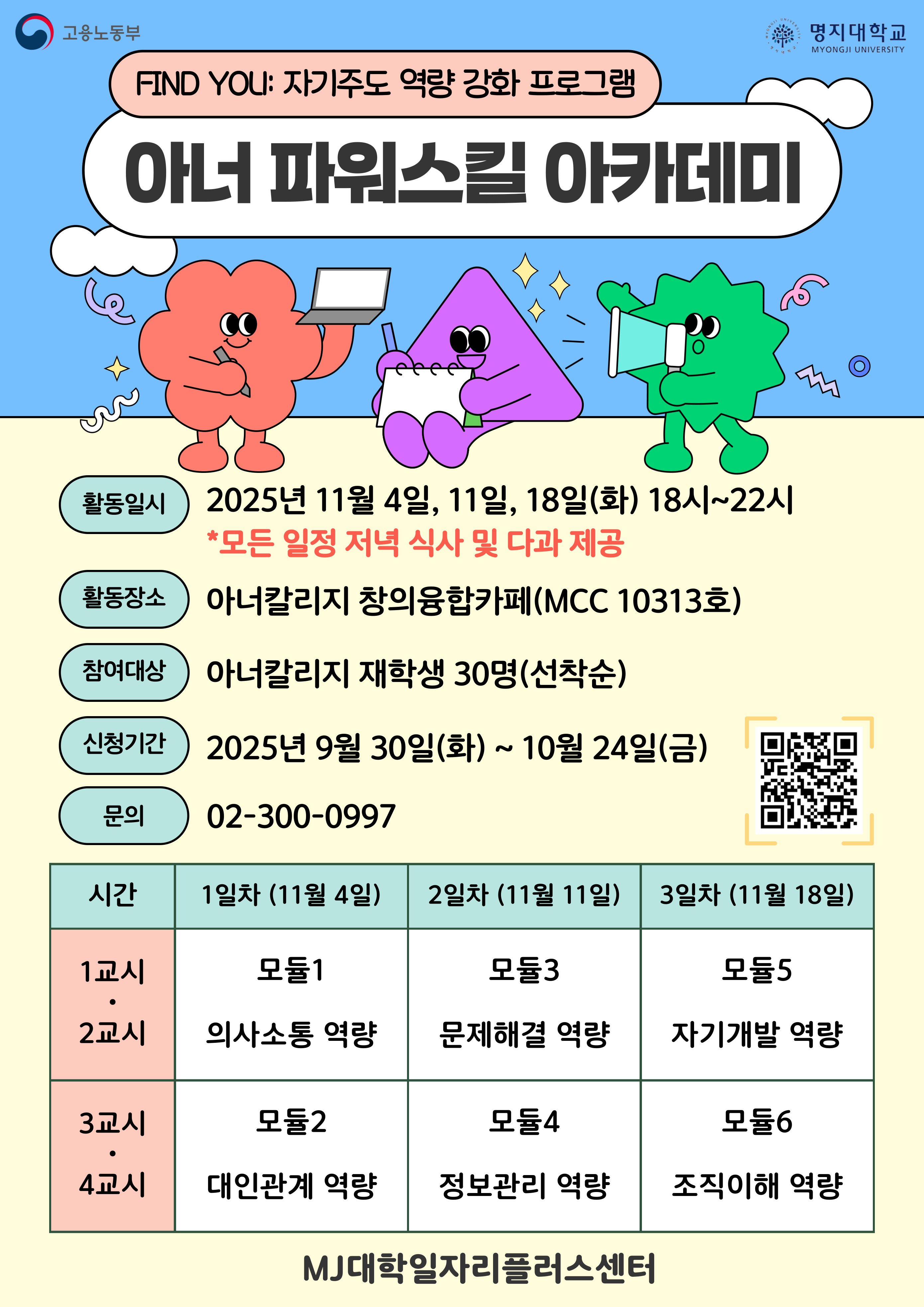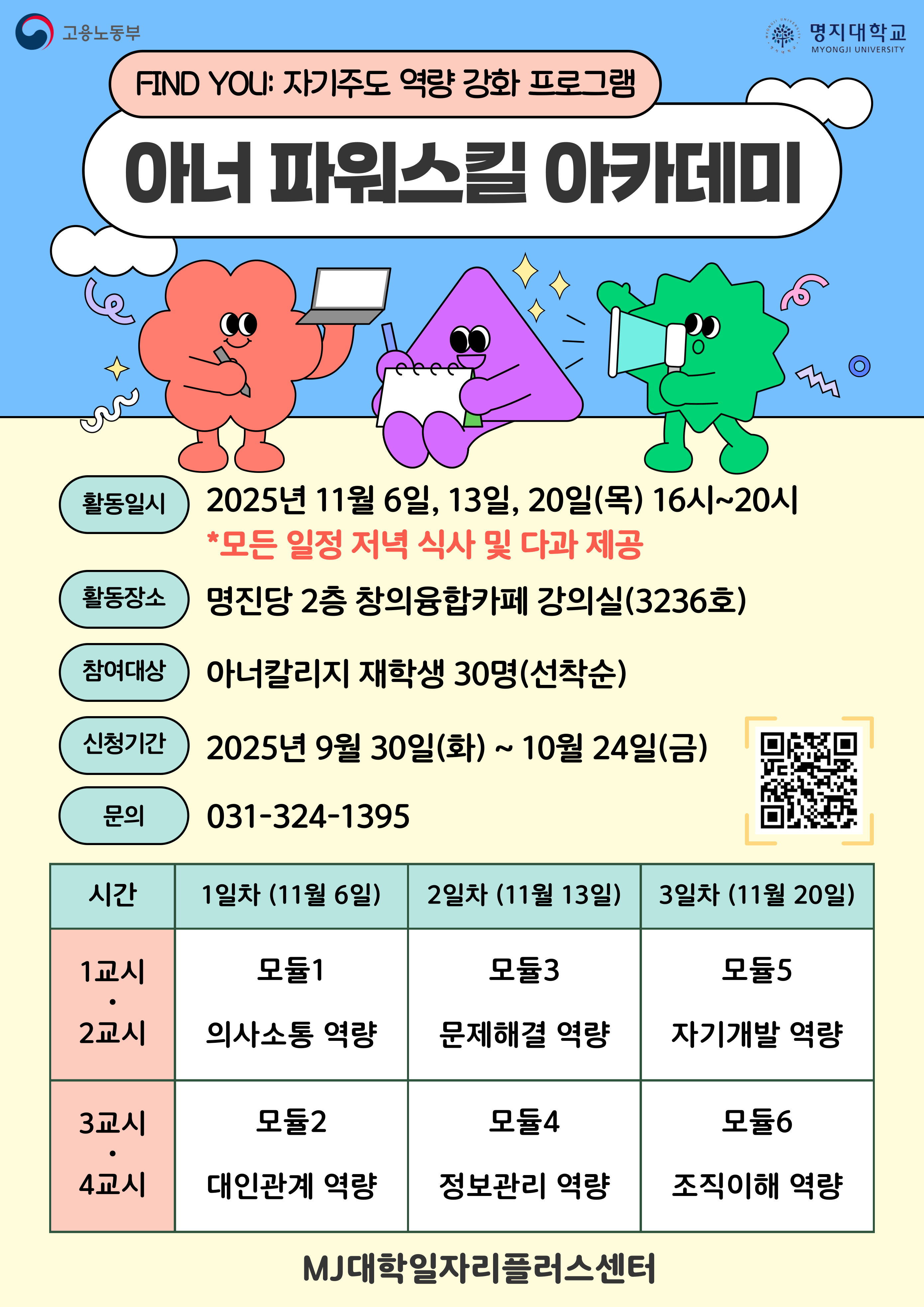 2025학년도 아너 파워스킬 아카데미 프로그램을 아래와 같이 안내하오니 학생 여러분의 많은 참여 바랍니다.