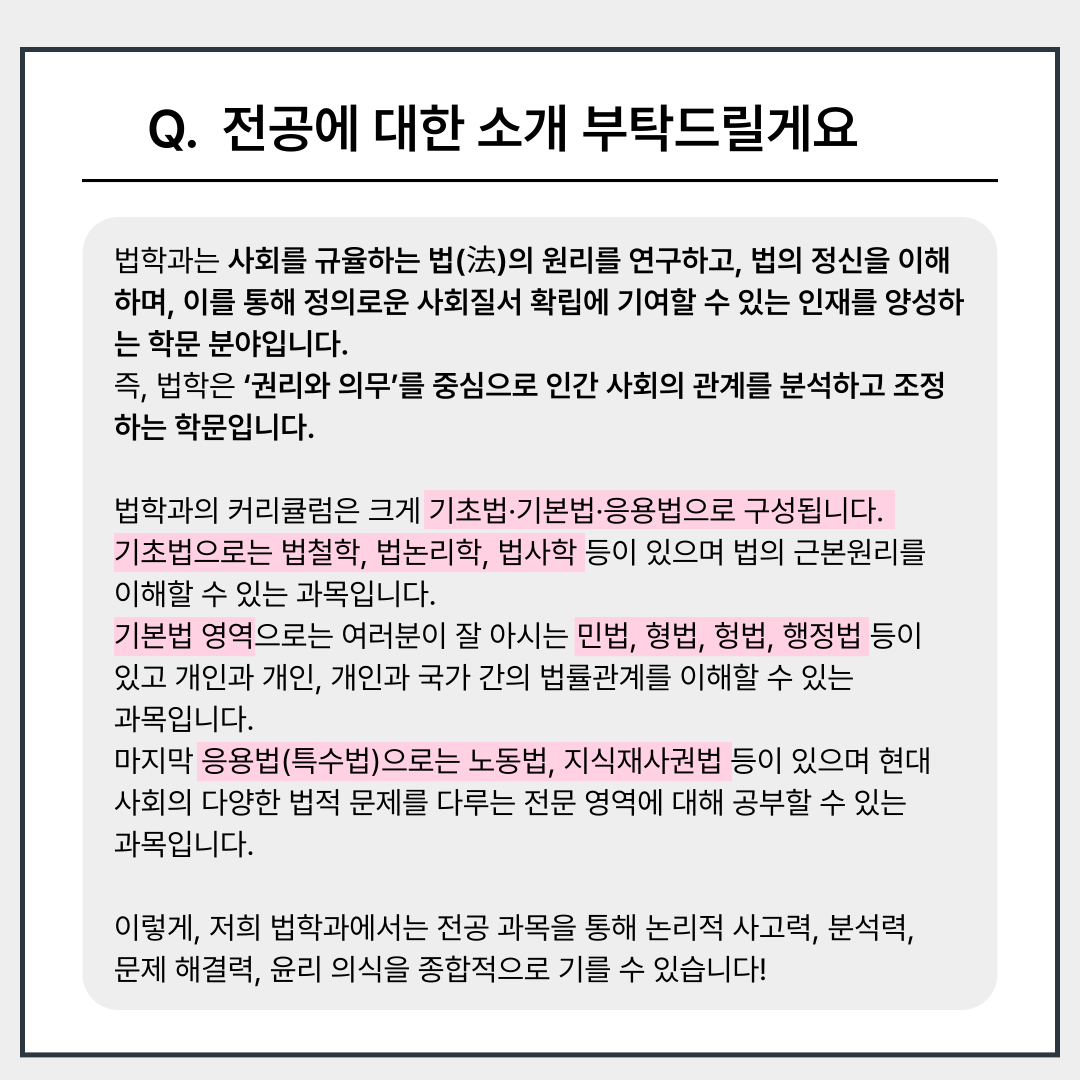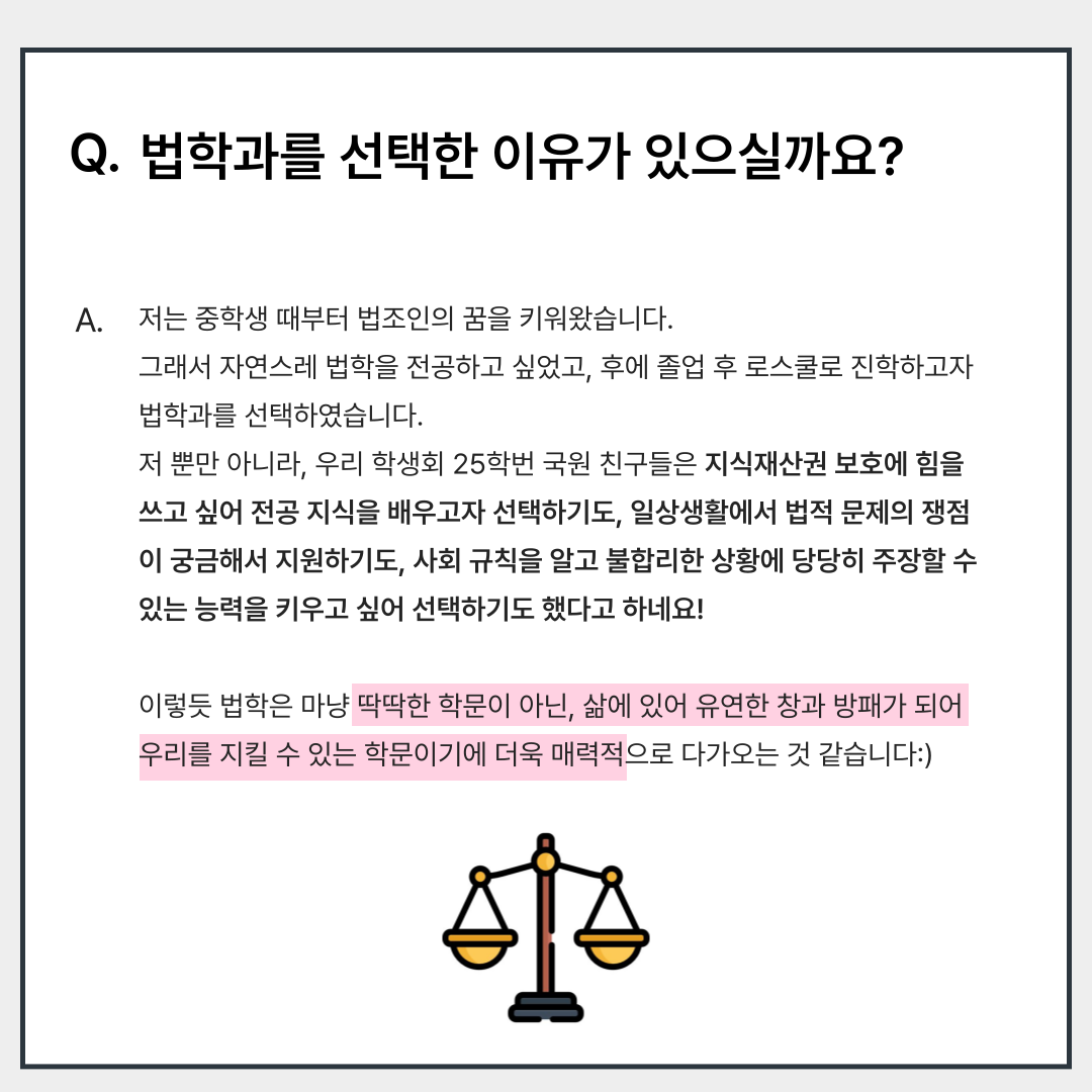[인문 서포터즈] 우리 학과 소개해 줄게 '법학과'편